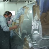 FahrzeuglackierungVor Beginn der Lackierarbeiten werden unsere Kundenfahrzeuge mit einer speziellen Schutzfolie abgedeckt, um Schmutz und Lacknebel fernzuhalten. Durch Schleifen und anschließendes Spachteln, werden Unebenheiten am Fahrzeug geglättet. Anschließend werden zuerst eine Grundierung und dann ein Füller aufgetragen. Die Grundierung gewährleistet Schutz vor Rost, der Füller ebnet letzte Schleifkratzer. Nach dem Trocknen mit Infrarotstrahlen, wird der Füller flächig fein geschliffen. Nun folgt die Farbtonfindung mittels handgespritzter Farbmuster und einer Tageslichtlampe. Der passende Farbton wird mit Hilfe einer speziellen Software am PC ausgemischt und anschließend auf die Reparaturstelle lackiert. Zum Schluss wird noch Klarlack aufgetragen, um dem Fahrzeug Brillanz und Schutz zu verleihen. - neueste Wasserlacktechnologie - umweltgerechte Entsorgung - lösemittelred. Materialien - jeder Serienfarbton mischbar IndustrielackierungenSei es das Beschichten von PVC-Platten oder das Hochglanzlackieren von MDF-Möbelteilen. Wir sind der ideale Partner für Sie. Preiswert und termingerecht erledigen wir die anfallenden Lackierarbeiten. Alles was nicht größer als 7x4m ist, kann von uns in jeder Farbe und in jedem Glanzgrad lackiert werden. Testen Sie uns! |